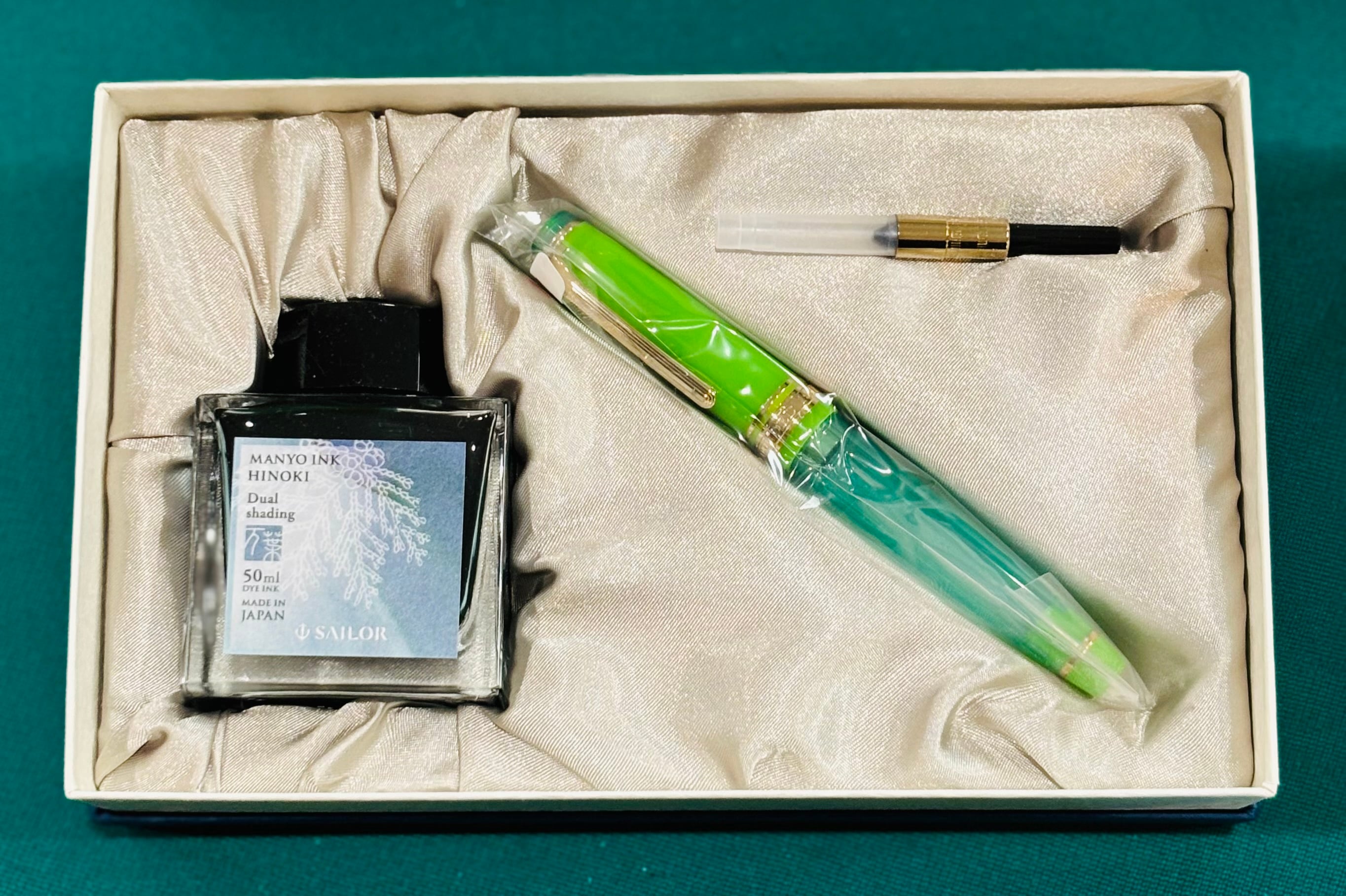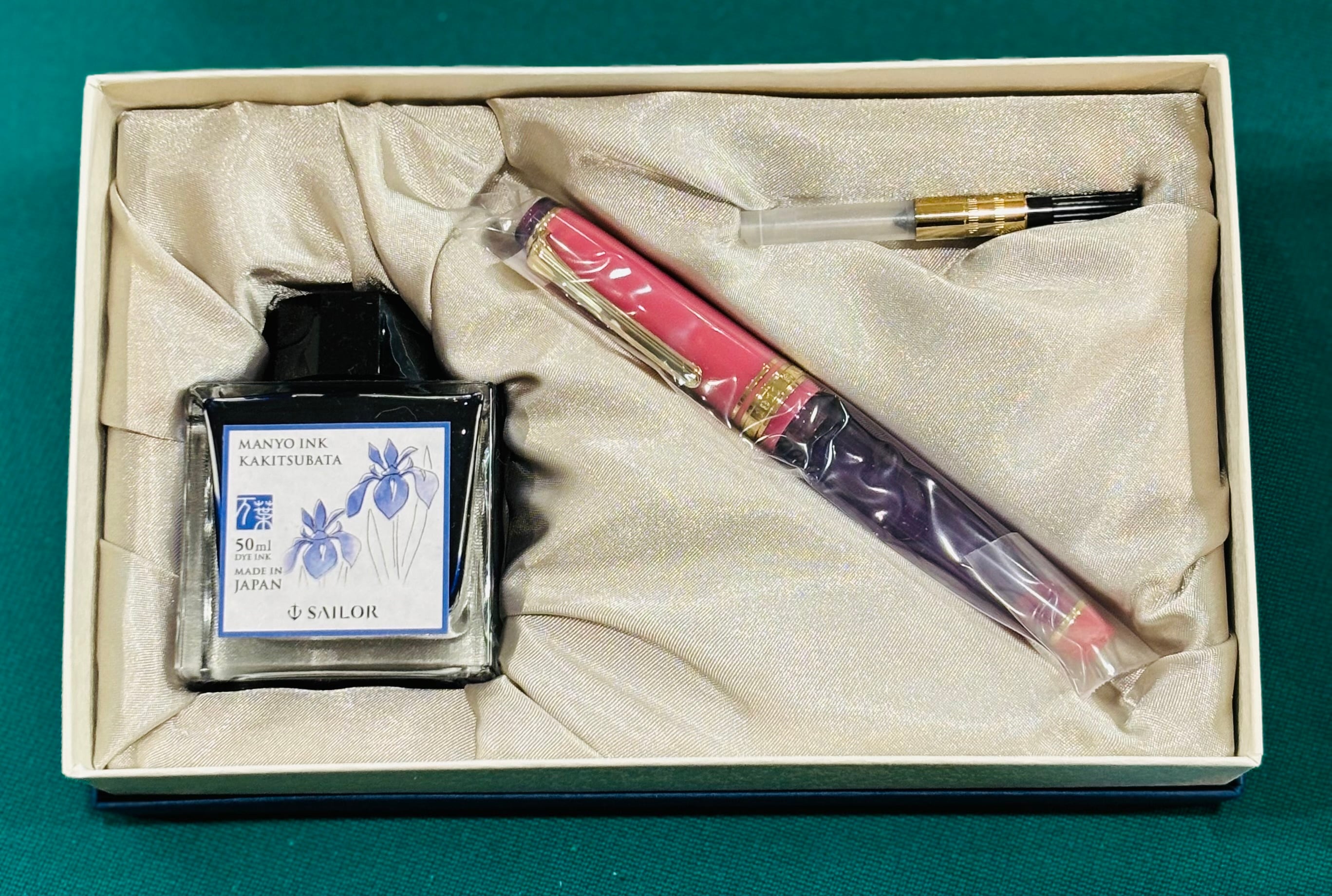 内容:万年筆と万葉インク、インク吸入器コンバーターの3点セット。