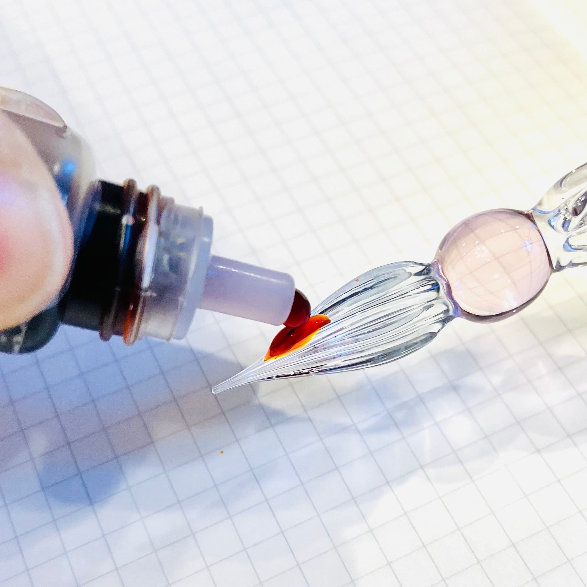 ガラスペンのペン先に直接つけるなどして、ご利用くださいませ。